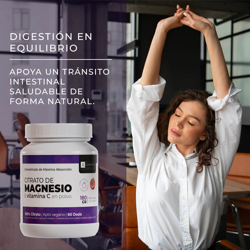 Suplemento dietario a base de citrato de magnesio y vitamina C / 1600mg de Magnesio por dosis.