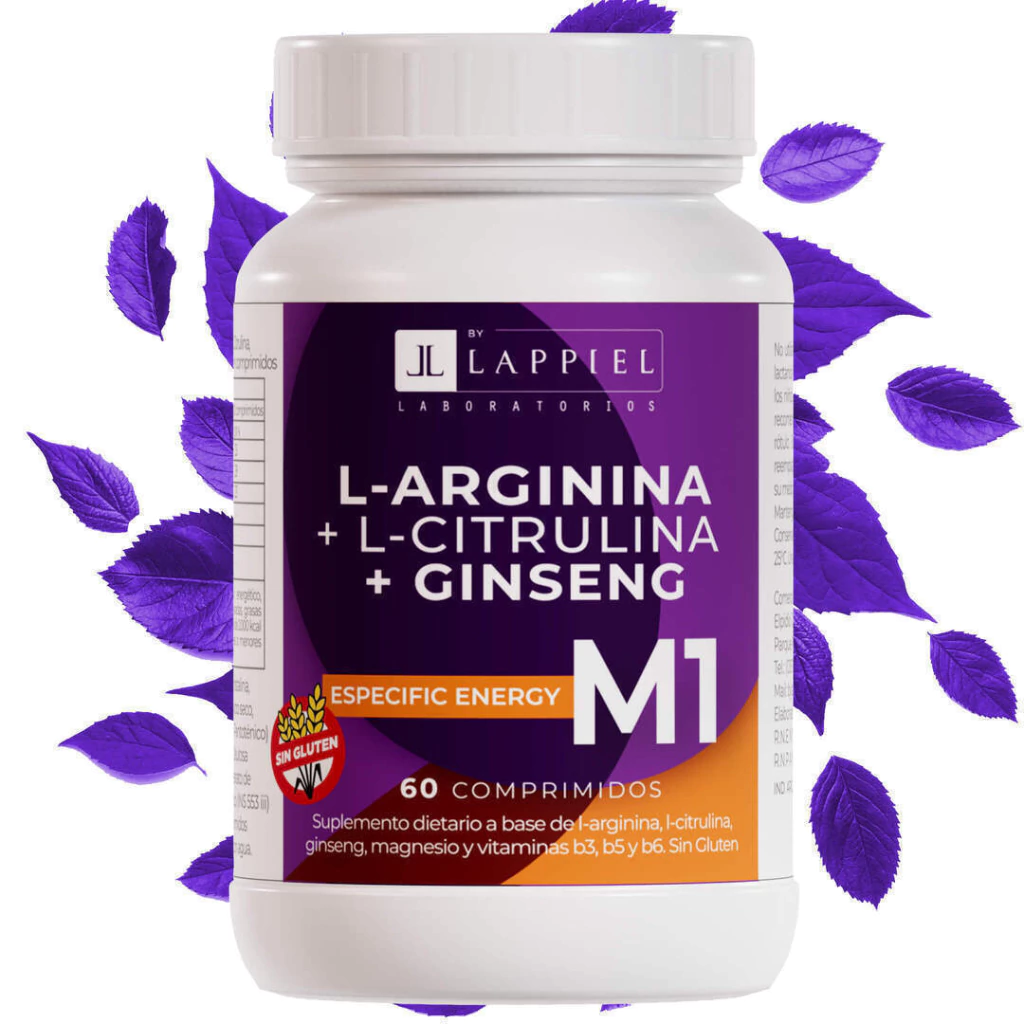 Composición L-Arginina, L-Citrulina y Ginseng, Vitaminas B3, B5 y B6.