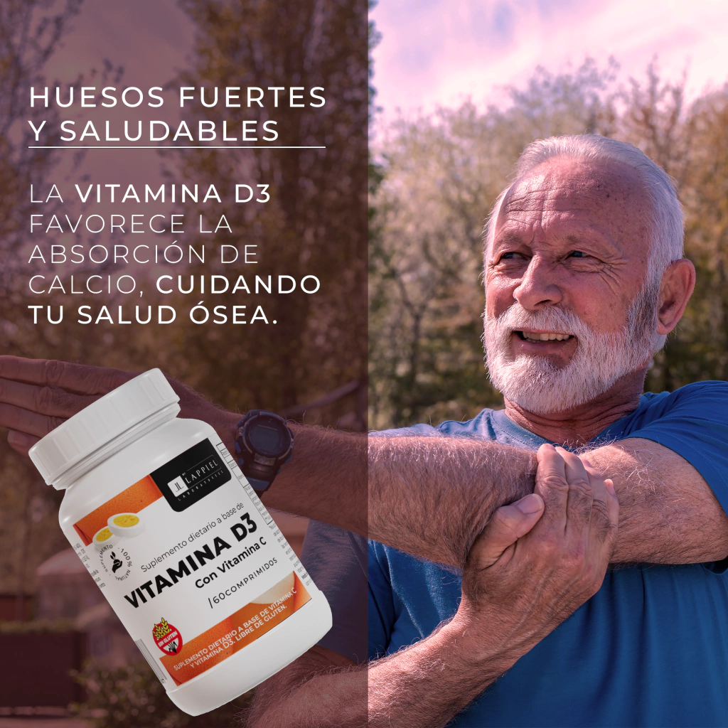 Vitamina D3 para huesos fuertes y músculos saludables.
